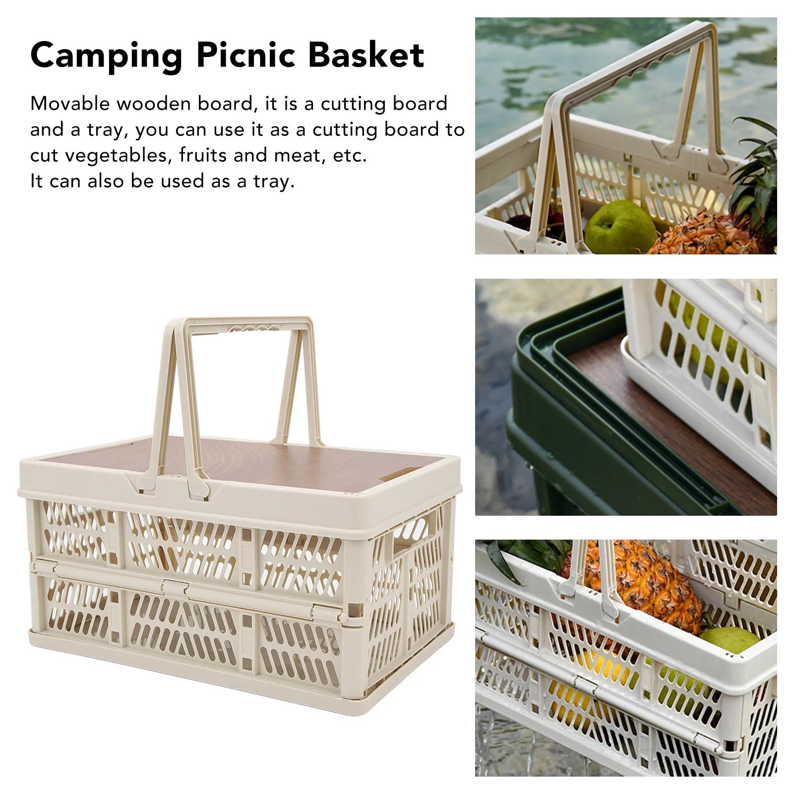 1. WOODEN BOARD: Movable wooden board, it is a cutting board and a tray, you can use it as a cutting board to cut vegetables, fruits and meat, etc. It can also be used as a tray.